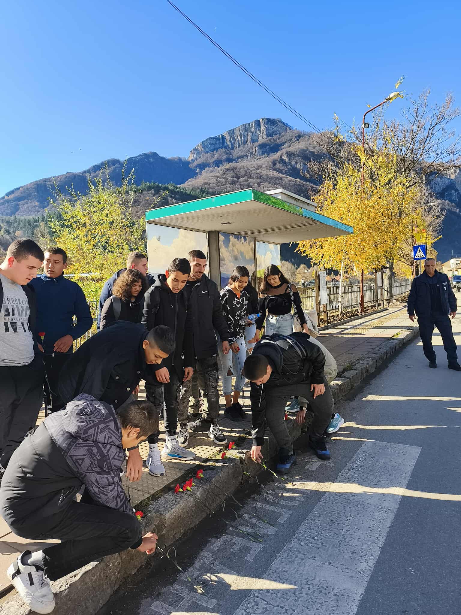 Доброволците поднесоха и цветя в памет на жертвите на пътно – транспортни произшествия и помагаха на по-малки ученици да пресичат безопасно на една от пешеходните пътеки в близост до общината.