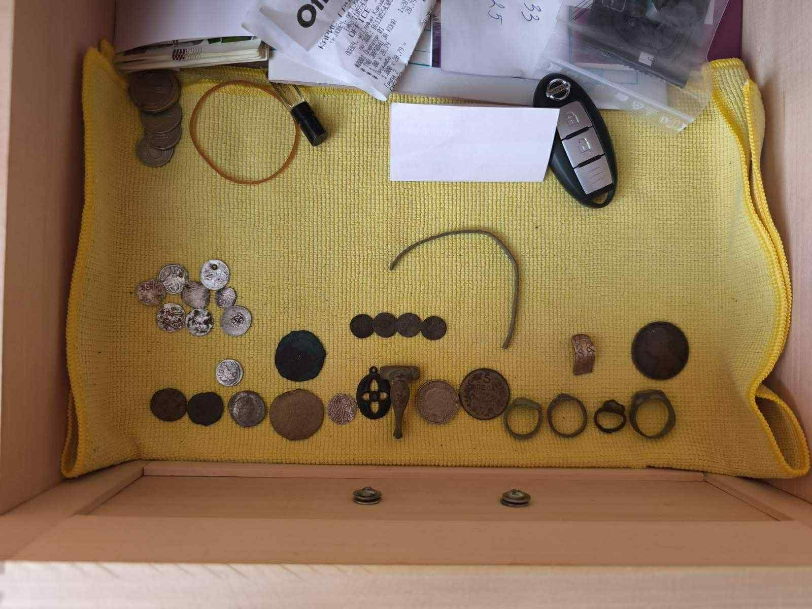Криминалисти са извършили проверка в частен дом в с.Галата, обитаван от 47-годишен. Намерени и иззети в хода на следствените действия са 21 монетовидни предмета, 5 с пръстеновидна форма, както и 10 с неправелна форма, всички с белези на античност.