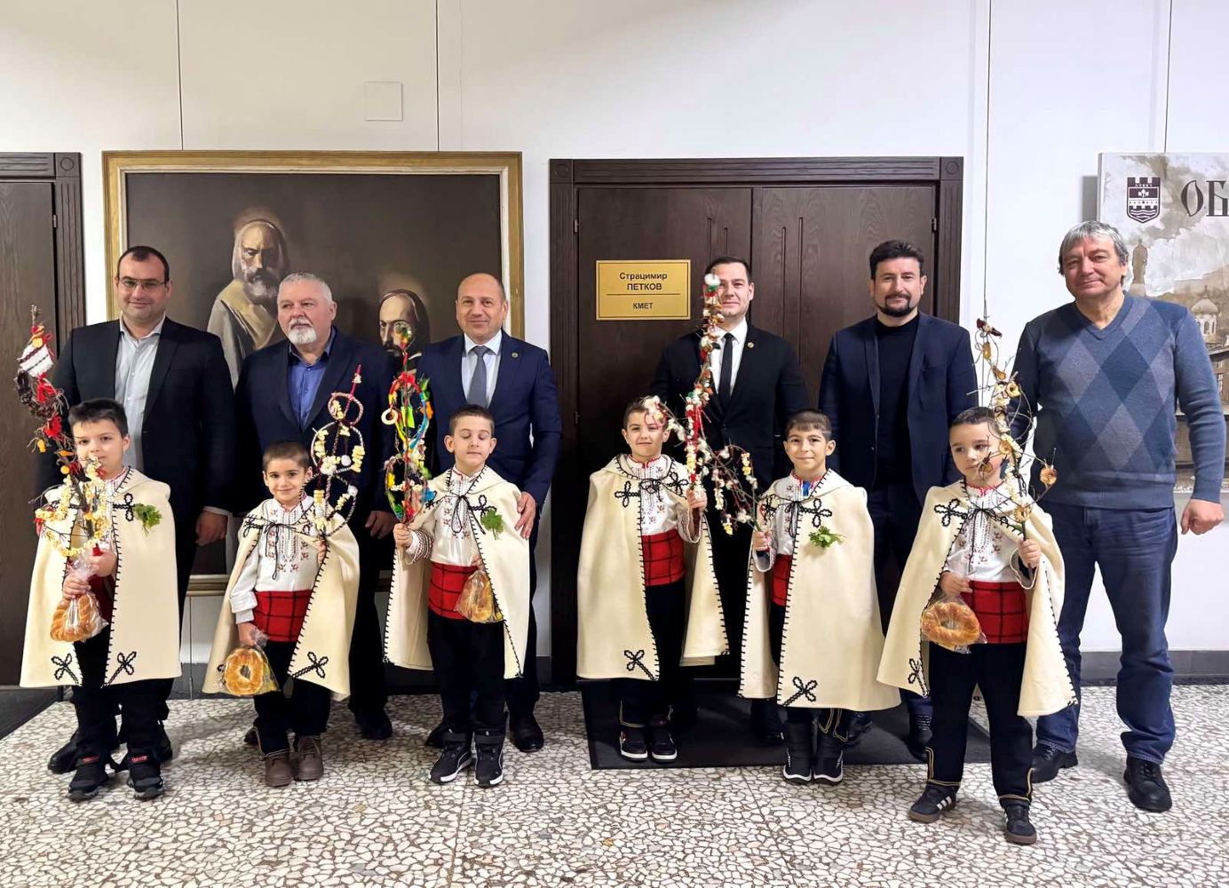 Малчуганите бяха тържествено посрещнати във фоайето от ръководството на Общината и служителите. Те представиха пъстра фолклорна програма, с която отправиха своите наричания за здраве, благоденствие и берекет.