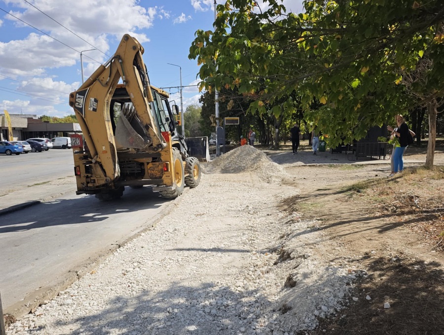 Екипи на „Инжстрой“ ЕООД ремонтират асфалтовата тротоарна настилка в района на спирката на градския транспорт при магазин „Лидъл“ в жк „Сторгозия“. Насипва се трошен камък, редят се градински бетонови ивици, след което още бъде положен и нов асфалт в тротоарния участък.
