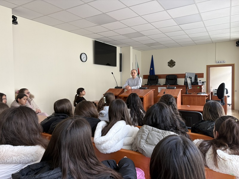 Учениците се запознаха още със структурата на съдилищата в България, триинстанционното производство, както и с ролята на съдебните заседатели в наказателния процес.