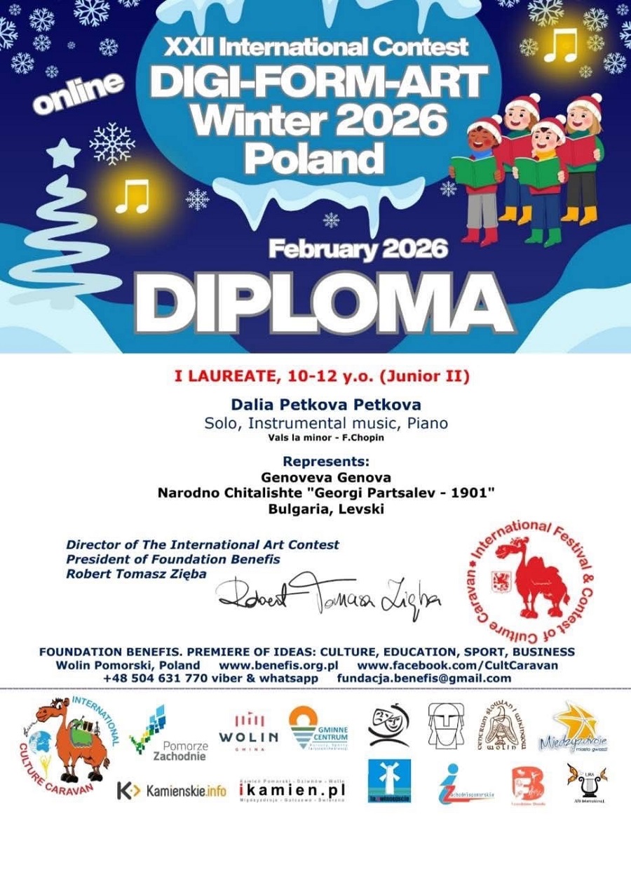Приключиха XXII Международен конкурс „DIGI – FORM – ART“ – Полша 2026 г. и XXII Международен конкурс „Звезден мост – островите по света“ – Япония 2026 г., в които участие взеха млади изпълнители от различни държави. След оспорвана конкурсна програма международните журита отличиха най-добрите участници в различните категории.