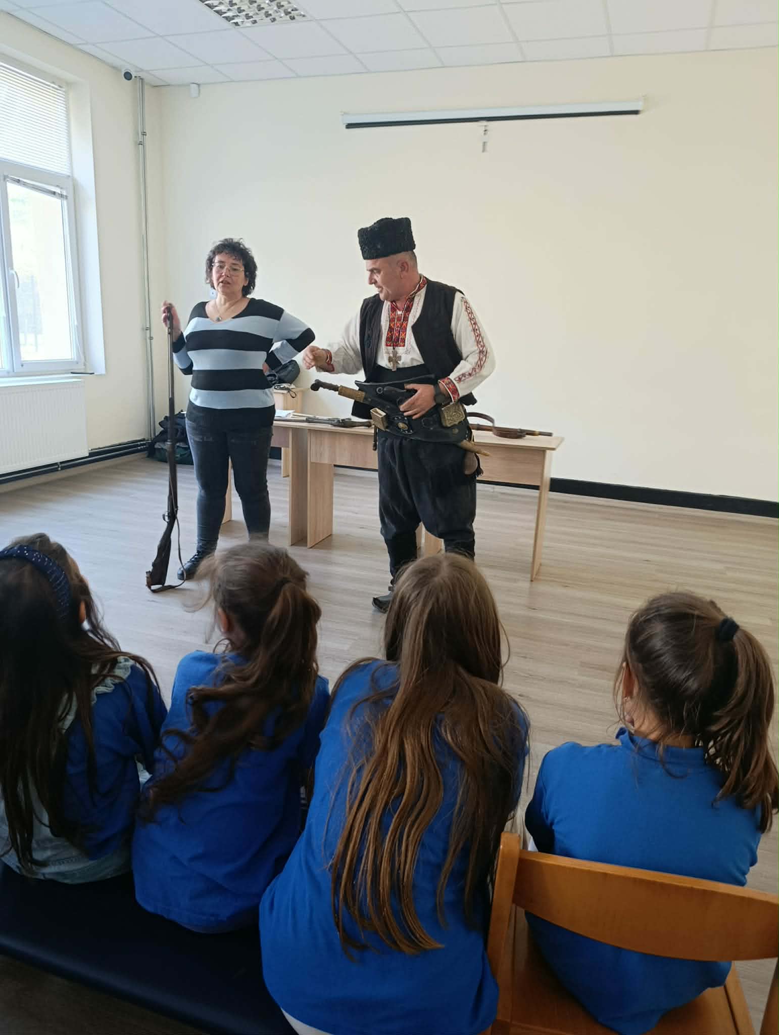 С много любопитство и вълнение учениците научиха кои са били хайдутите – смелите български закрилници на народа, които в трудните времена на робството са защитавали честта, вярата и свободата на българите. Те се запознаха и с оръжията, които хайдутите са използвали – пушки, пищови, ятагани и саби, които са били не само средство за защита, но и символ на борбения дух на българина.