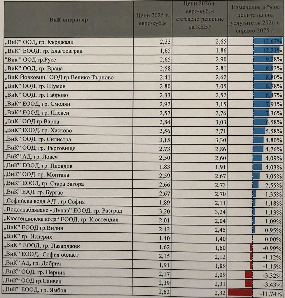 Напомням ви, че в края на миналата година КЕВР утвърди по-високи цени на водата от 1 януари 2026 г. Тогава с регионалния министър Иван Иванов призовахме държавните ВиК дружества, които имат оперативна самостоятелност, да не го правят. Не само заради съвпадането с влизането на еврото. Но и защото смятаме, че преди да поскъпва услугата, КЕВР трябва да изработи механизъм за обезщетение на гражданите при влошено качество на подаваната от ВиК питейна вода. Ние от ГЕРБ ще работим за това!